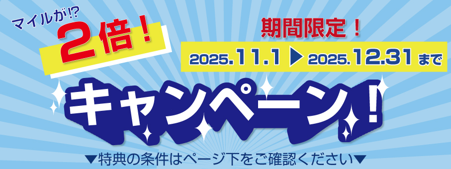 10 万円未満=1,000マイル ▷ 今だけ 2,000 マイル!!